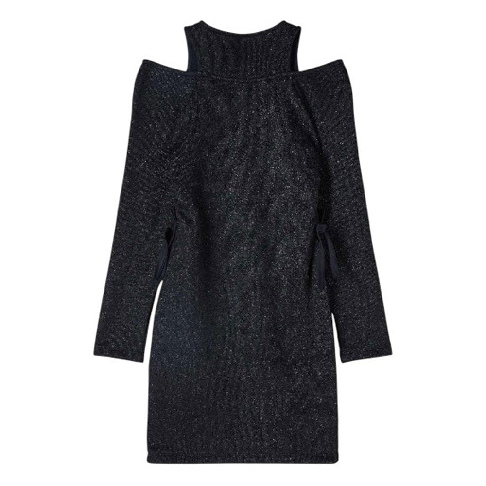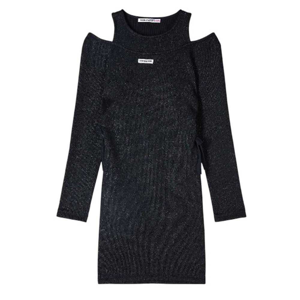 Abito realizzato in maglia a coste, con dettagli lurex. Presenta dettagli cut out, collo tondo, maniche lunghe, coulisse regolabile ai lati e orlo dritto. È decorato con patch logo applicata sul davanti.
