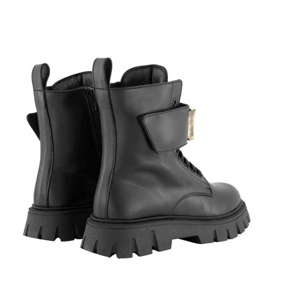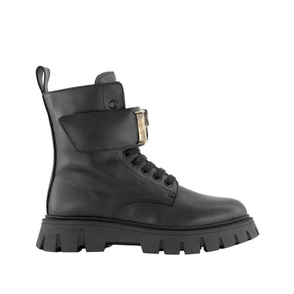 Anfibio nero carrarmato fibbia con logo