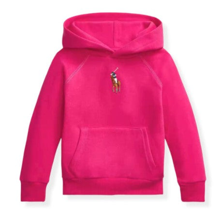 Hoodie, kangaroo pocket, embroidered logo on the front.