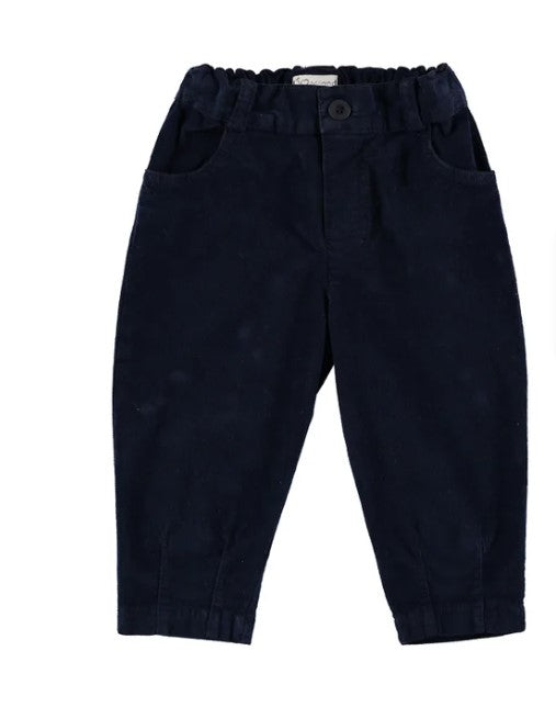 Smooth velvet trousers, five-pocket style, straight leg.