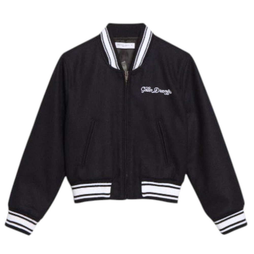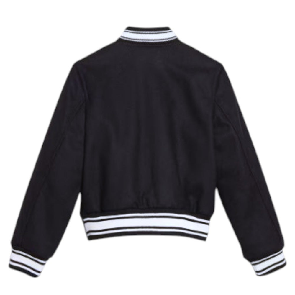 Wool blend bomber jacket, front zip fastening, embroidered logo on the chest, contrasting ribbed trims.