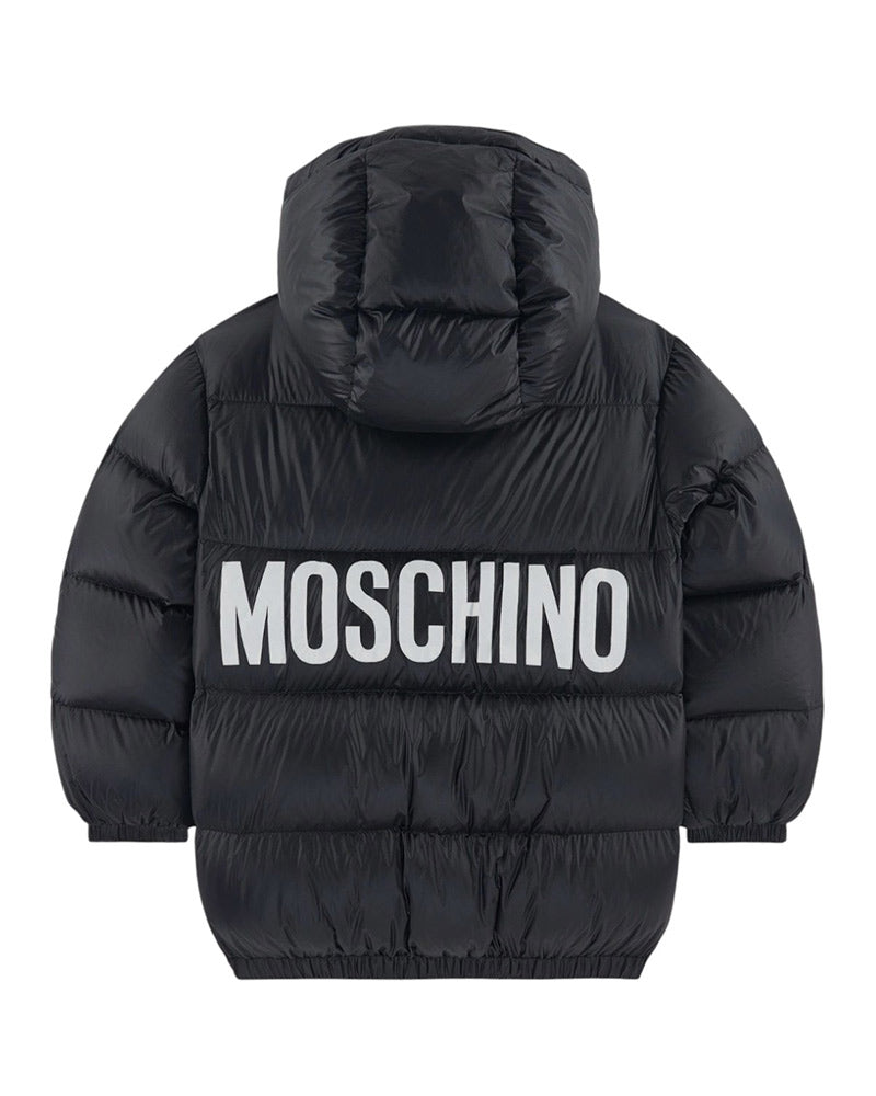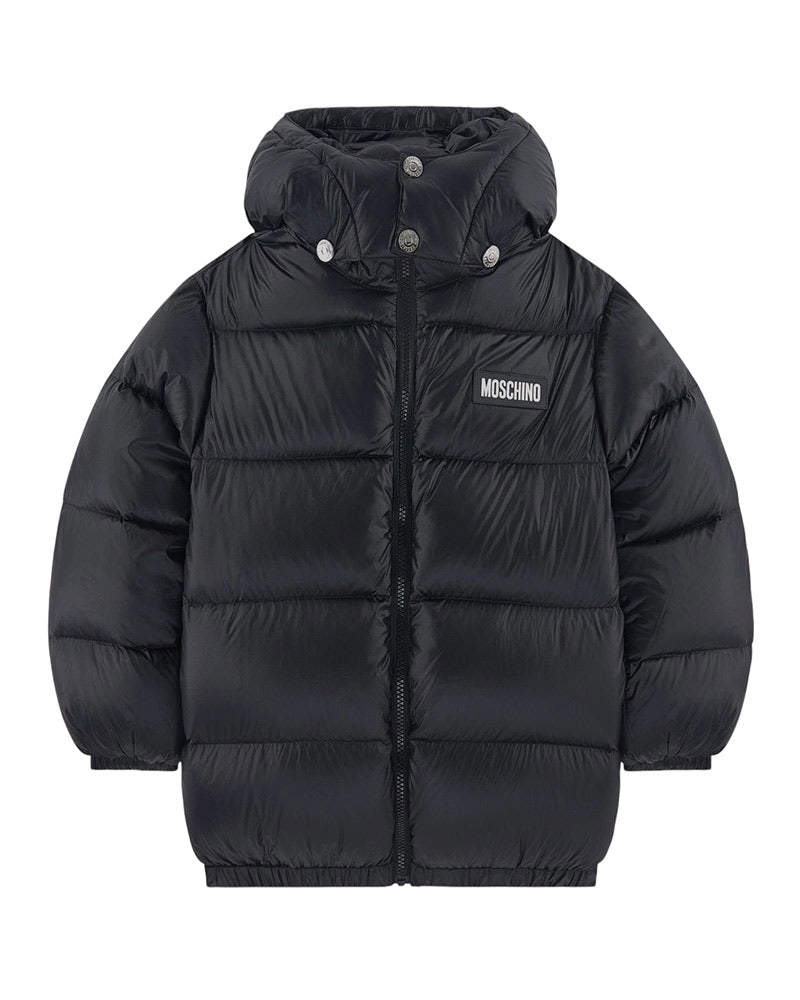 Bomber jacket, quilted, removable hood, welt pocket, zip fastening, logo on the front and back.