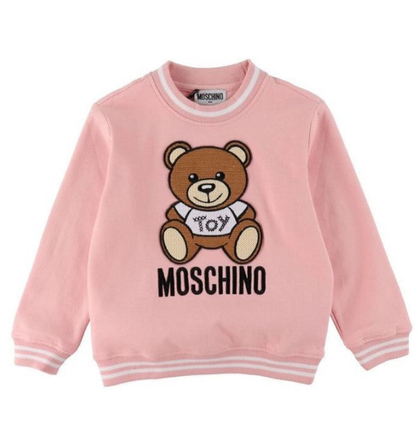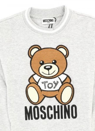 Crew neck sweatshirt with long sleeves, Teddy application and logo embroidery on the front.