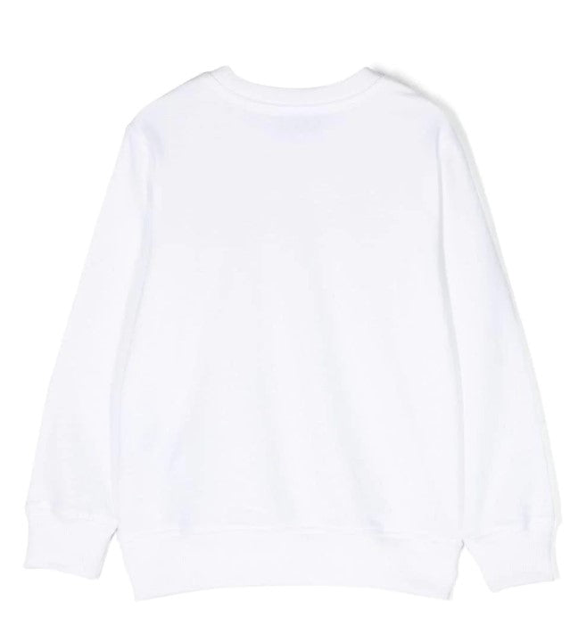 Crew neck sweatshirt, ribbed cuffs, collar and hem, symbol and logo printed on the front.