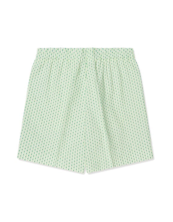 Children's Bermuda shorts in all-over patterned cotton, front button and zip fastening, elasticated waist at the back, front welt pockets.