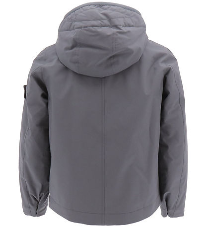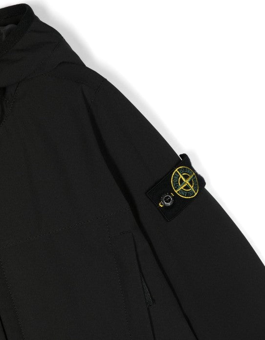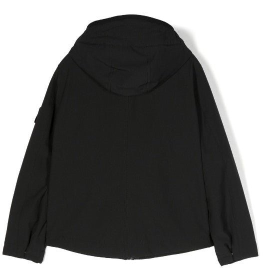 Jacket, front zip fastening, fixed hood, American pockets, applied logo patch.