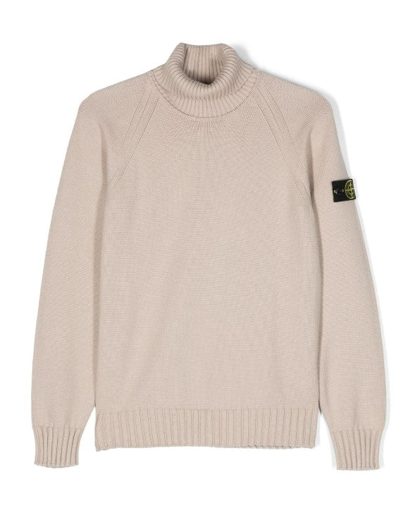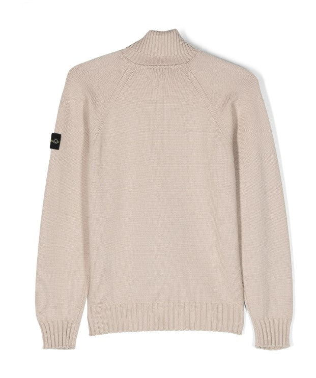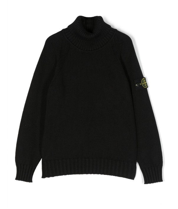 High neck sweater, classic logo patch applied on the sleeve, ribbed finishes.