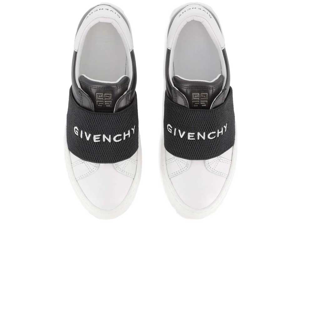 Le sneakers Givenchy Kids senza lacci offrono una calzata comoda e pratica grazie al dettaglio elasticizzato. Realizzate in bianco con inserti a contrasto sulla tomaia, presentano una punta tonda morbida per il massimo comfort. Il logo distintivo sulla linguetta aggiunge un tocco di stile raffinato, ideale per i più piccoli che desiderano unire funzionalità e design di alta qualità.