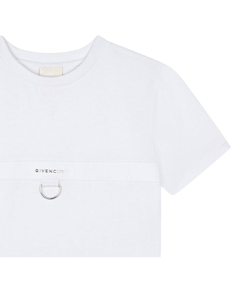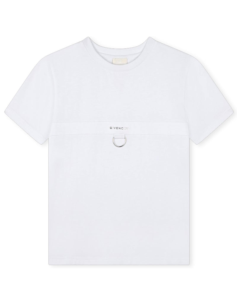 T-shirt girocollo a maniche corte realizzata in jersey di cotone da bambino. È decorata con placca logo in metallo applicata sul davanti.