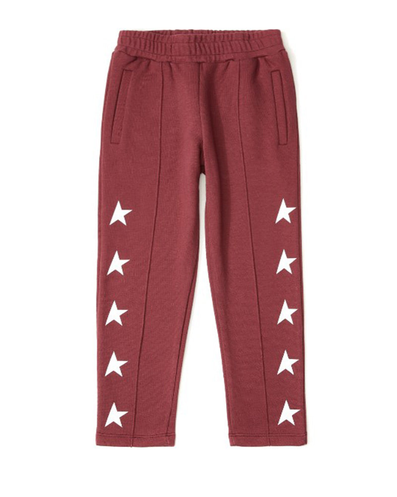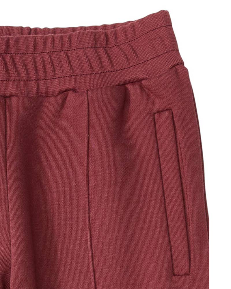 Jogger pants, elastic waist, welt pockets, back pocket, contrasting logo on the front.