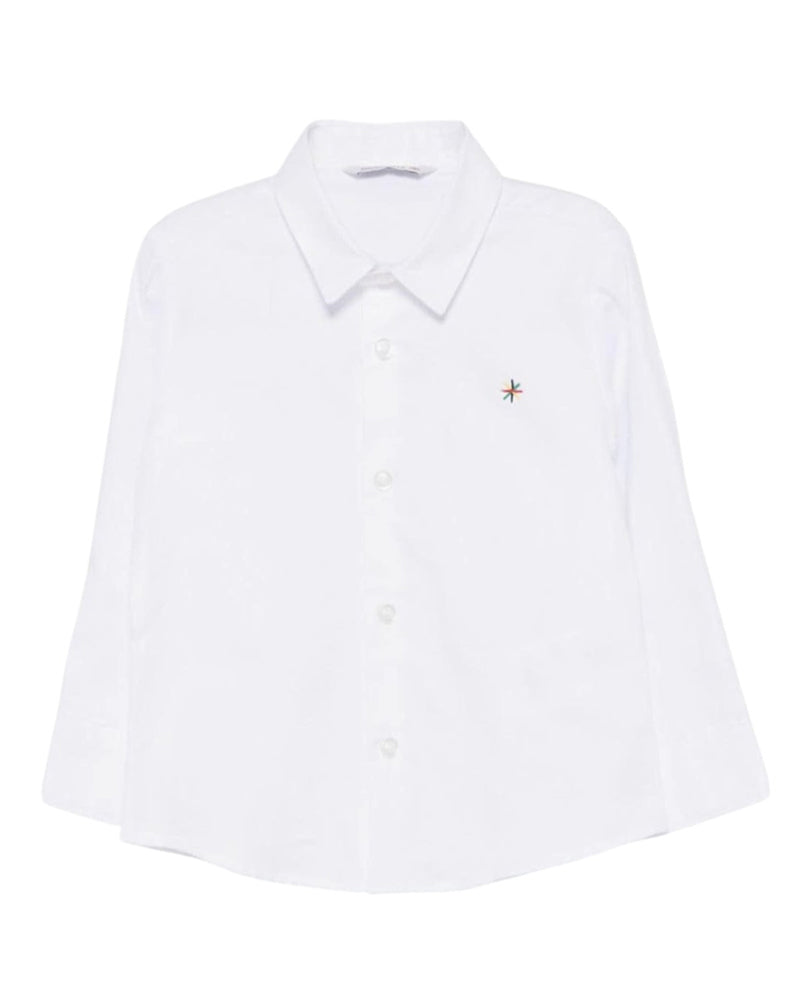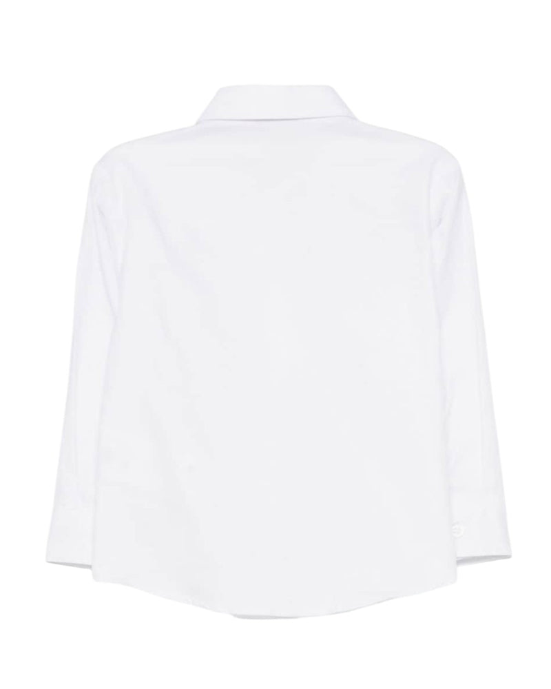 Camicia realizzata in popeline di cotone con colletto a punta, maniche lunghe con bottoni sui polsi, chiusura frontale con bottoni. È decorata con simbolo del brand ricamato sul petto.