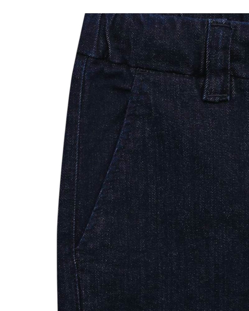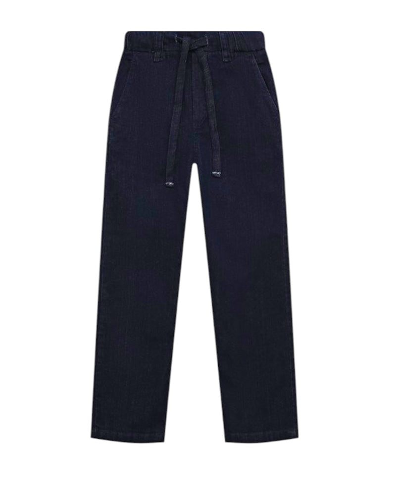 Jeans gamba dritta da bambino realizzati in denim di cotone. Presentano vita elasticizzata con coulisse, tasche laterali all'americana e taschino applicato sul retro.