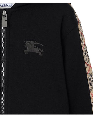 Burberry Felpa nera con cappuccio, zip e finiture Check 8108852