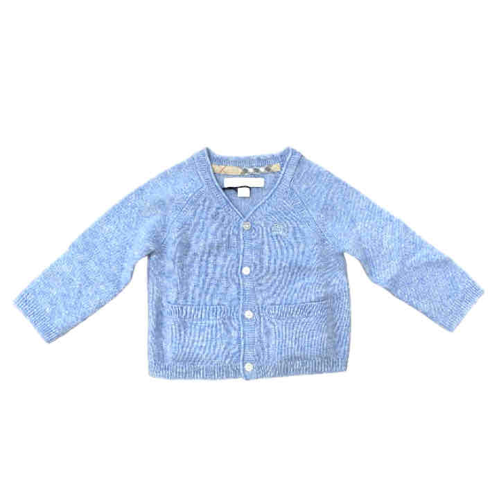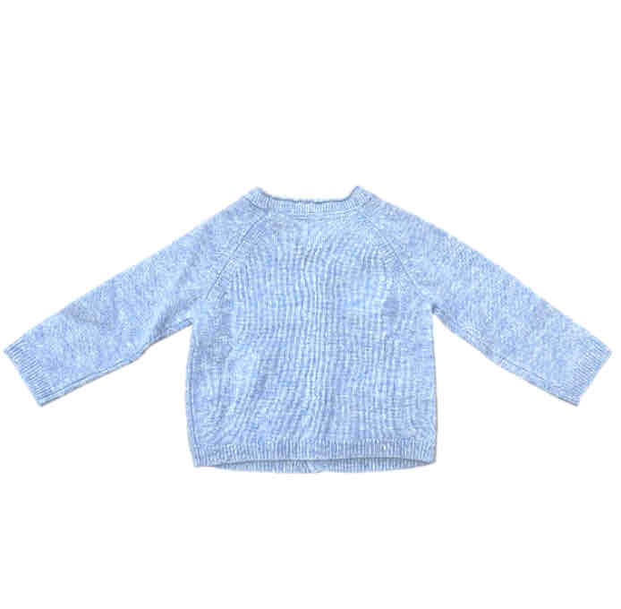 V-neck cardigan sweater, buttons on the front, patch pockets.