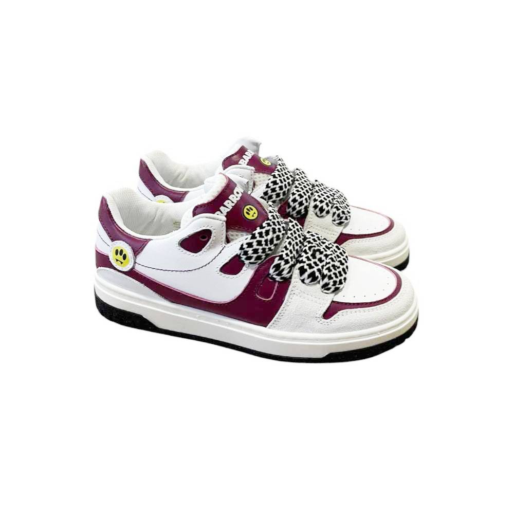 SNEAKERS IN PELLE BIANCA e PRUGNA