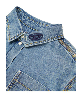 Nine:inthe:morning Camicia grigia in denim con patch logo 9JF25-IAM10