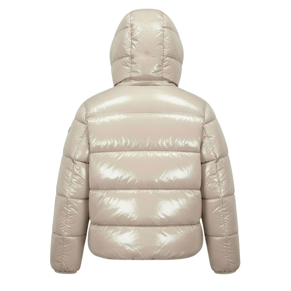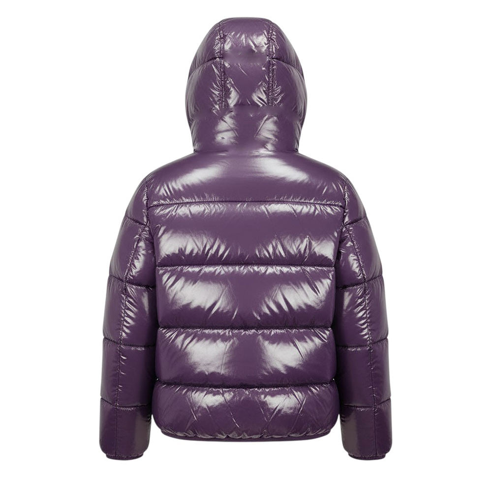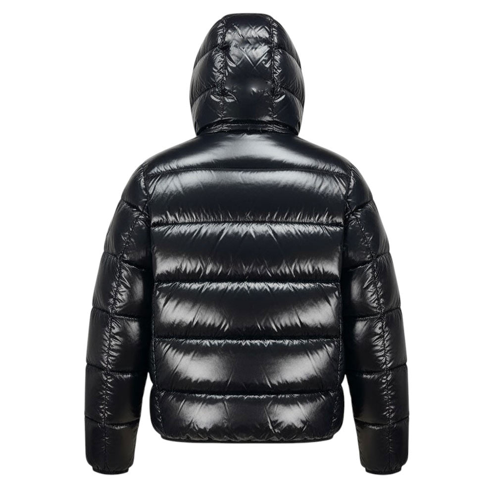 Quilted jacket, zip fastening, fixed hood, American pockets with zip, matching logo applied on the sleeve.