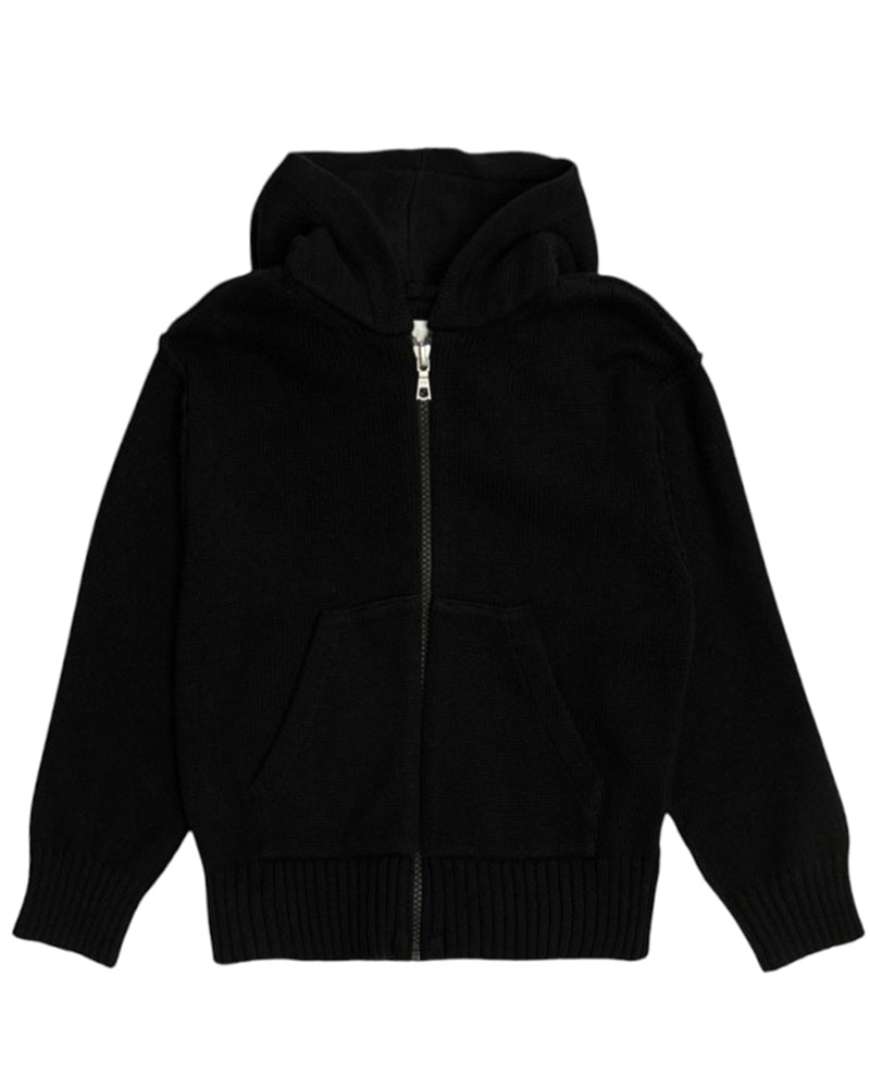 Cardigan realizzato in misto cotone, caratterizzato da cappuccio, chiusura frontale con zip, maniche lunghe, due tasche sul davanti, polsi e orlo a coste. È decorato con logo ricamato sul retro.