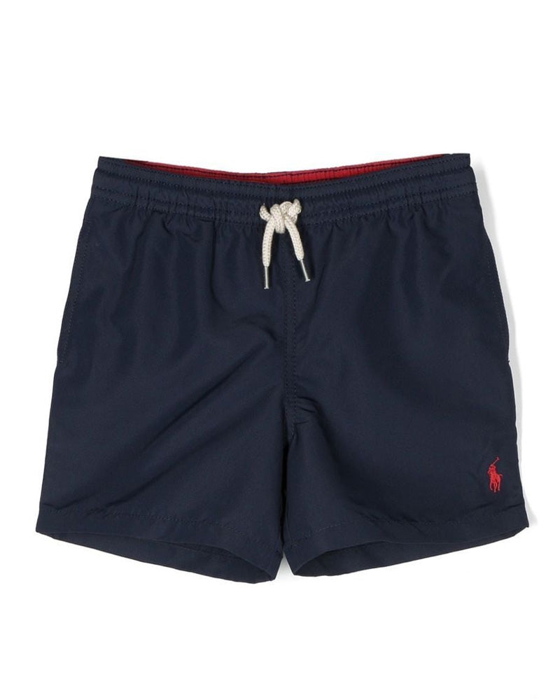Costume da bagno, toppa con logo sul retro, coulisse in vita elasticizzata e tasca posteriore a filetto.