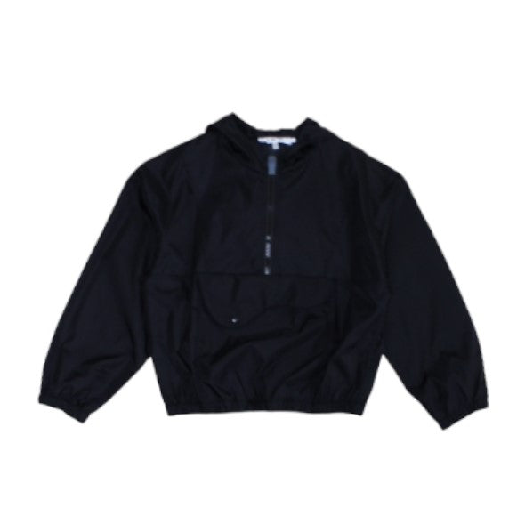 Nylon jacket with fixed hood, front zip fastening.