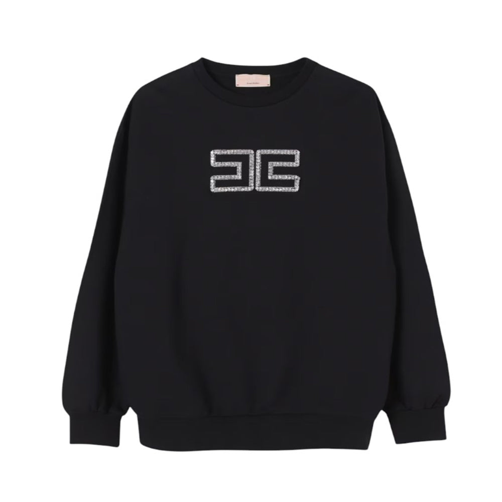 Elisabetta Franchi Felpa girocollo in cotone con strass EFFE151.0