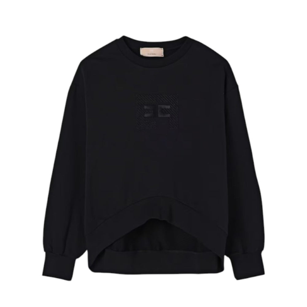 Elisabetta Franchi Felpa nera in cotone con logo e strass EFFE158.0