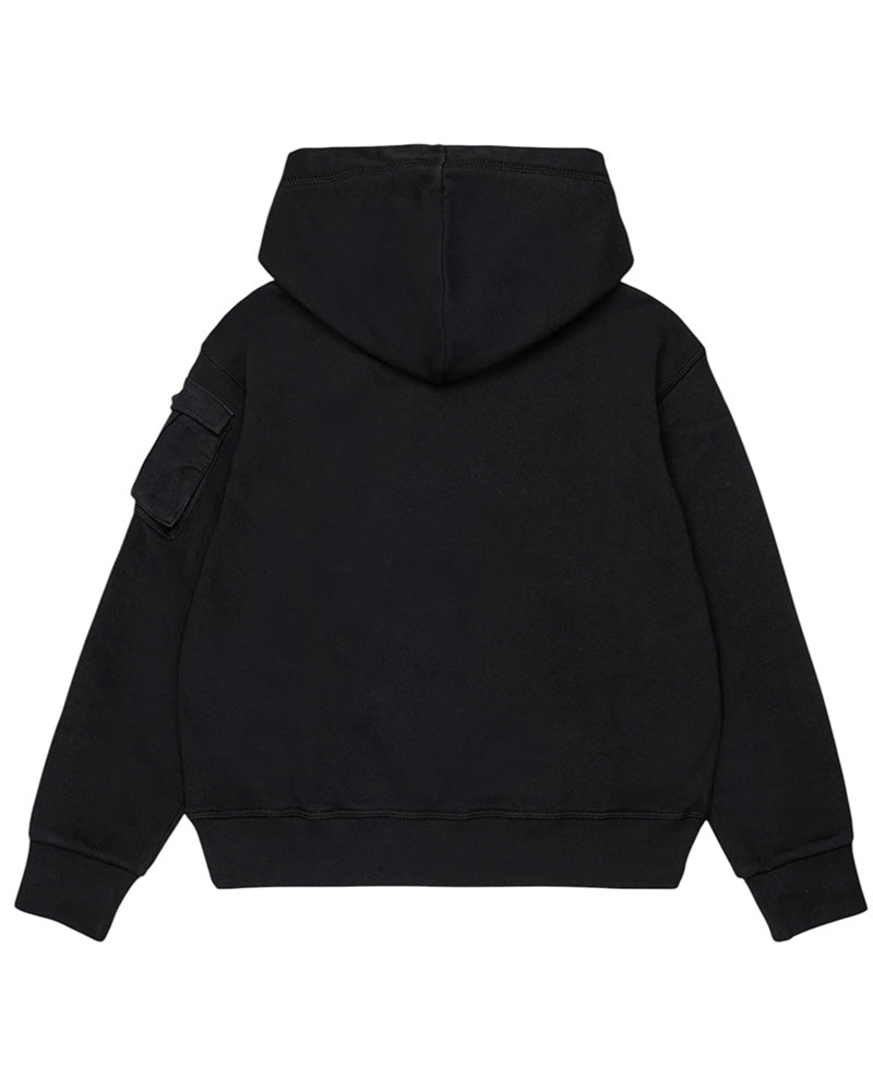 Felpa realizzata in cotone sgarzato, caratterizzata da cappuccio, maniche lunghe, polsi e orlo a coste. È decorata con logo gommato della Foglia d'acero sul lato del cuore e taschino in gabardine applicato sulla manica.