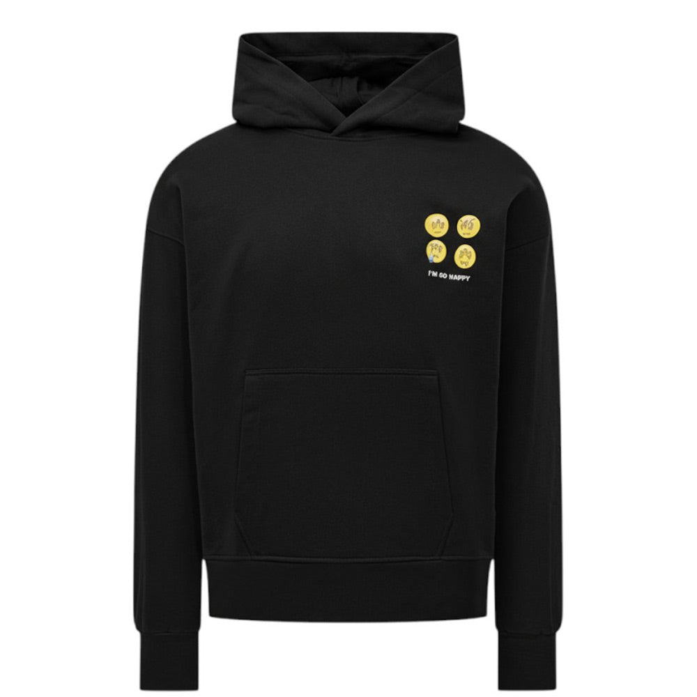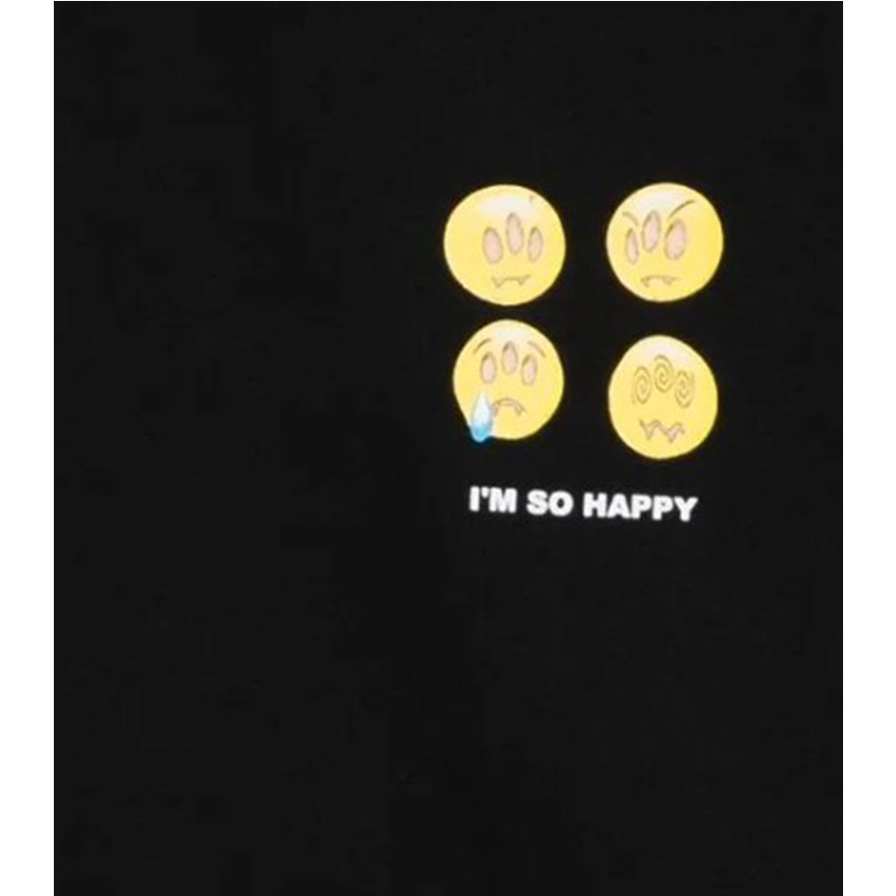 Felpa realizzata in cotone sgarzato, caratterizzata da cappuccio, maniche lunghe, tasca a marsupio sul davanti, polsi e orlo a coste. È decorata con stampa “I’m so happy” e grafiche smile sul petto e con maxi stampa sul retro con orsetto e smile impreziositi da applicazioni di perle.