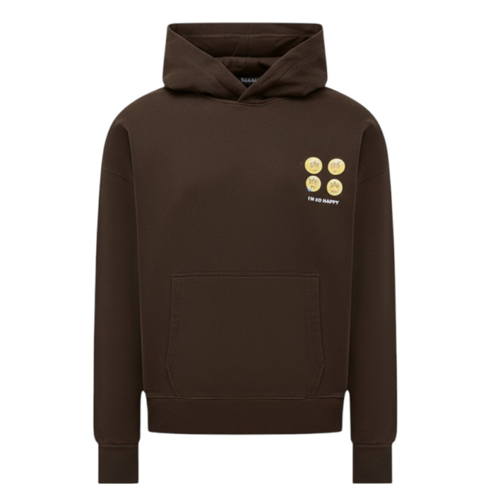 Felpa realizzata in cotone sgarzato, caratterizzata da cappuccio, maniche lunghe, tasca a marsupio sul davanti, polsi e orlo a coste. È decorata con stampa "I'm so happy" e smile sul petto e con maxi stampa logo e smile sul retro.