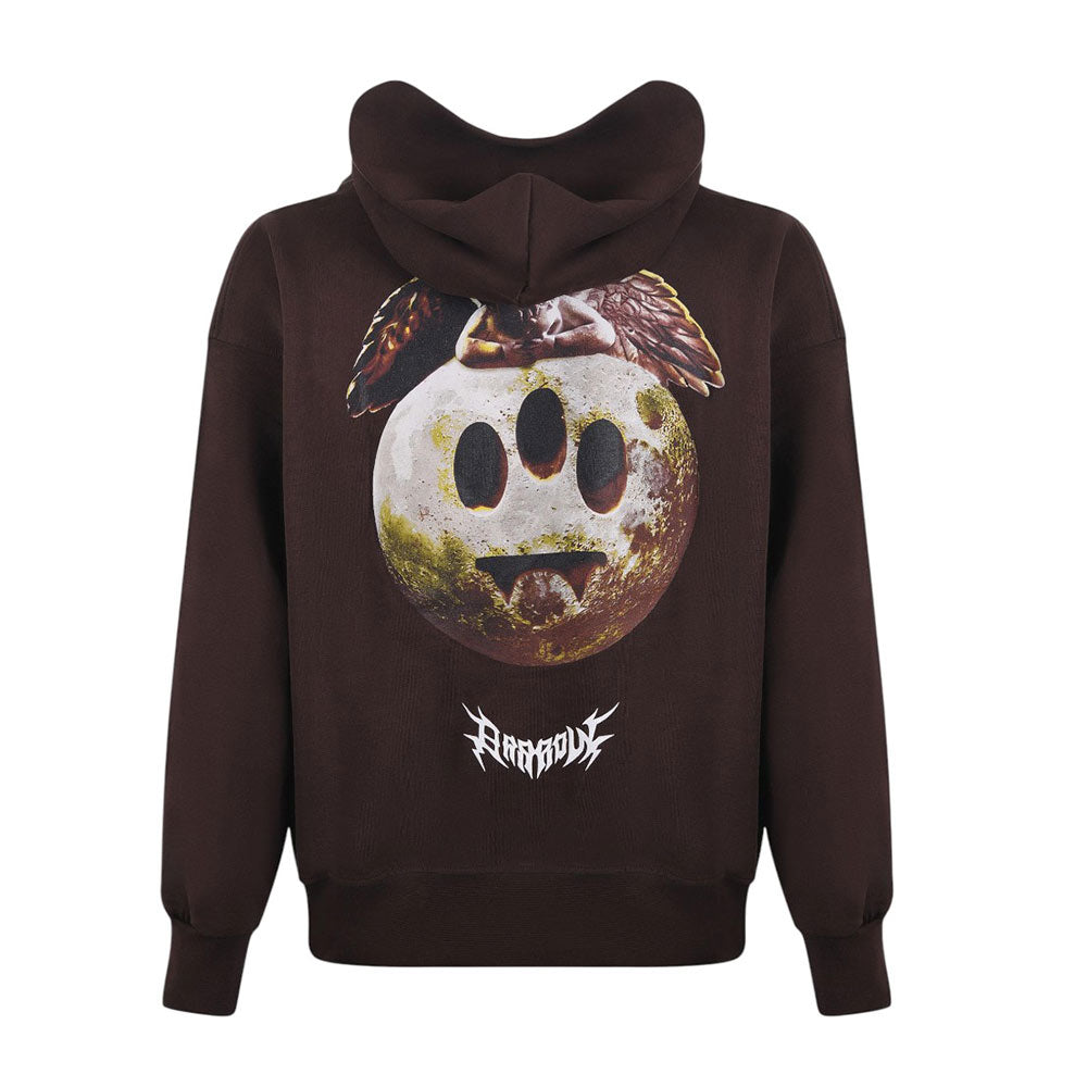 Felpa realizzata in cotone sgarzato, caratterizzata da cappuccio, maniche lunghe, tasca a marsupio sul davanti, polsi e orlo a coste. È decorata con stampa grafica con logo geometrico sul petto e con maxi stampa effetto fotografico con angelo gotico.