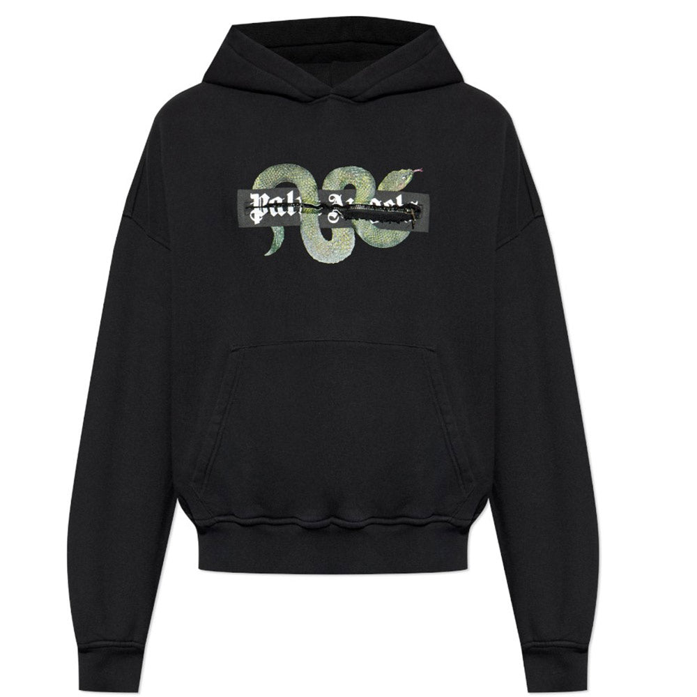 Palm Angels Felpa nera in cotone con cappuccio e stampa PMBB17GF25FLE0021055