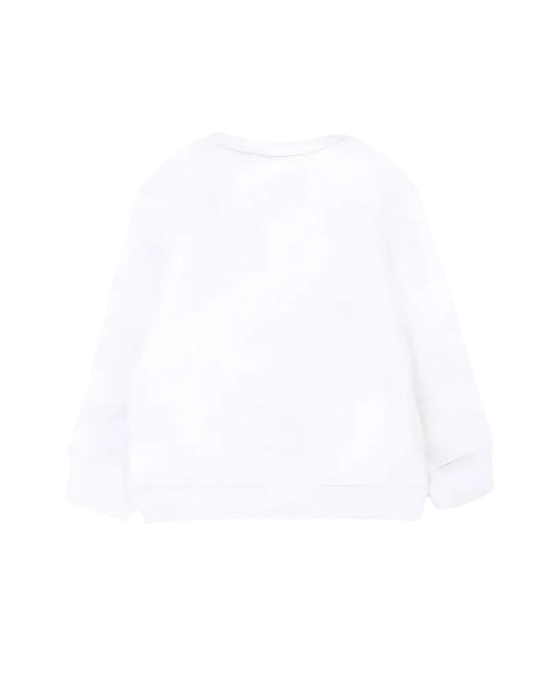 Felpa realizzata in cotone sgarzato, caratterizzata da collo rotondo, maniche lunghe, chiusura con bottoncini a pressione sulla spalla e finiture a coste. È decorata con stampa logo sulla parte anteriore.