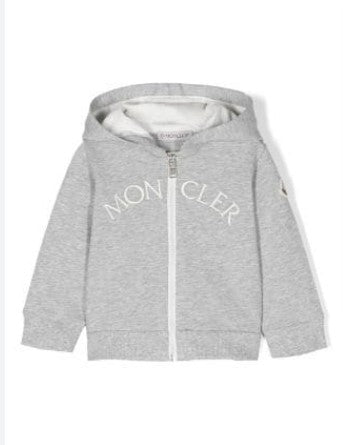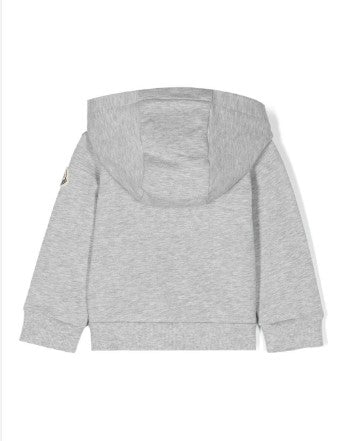 Baby sweatshirt with zip and long sleeve hood, contrasting embroidered logo on the front, logo patch application on the chest, ribbed finishes.