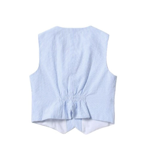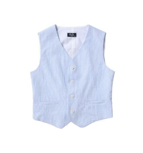 Baby vest with striped pattern, front fastening with buttons, decorative pockets on the front.