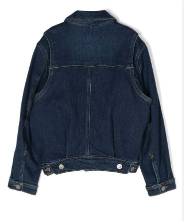 Long-sleeved denim jacket, front button fastening, patch pockets on the front, embroidered logo on the pocket.