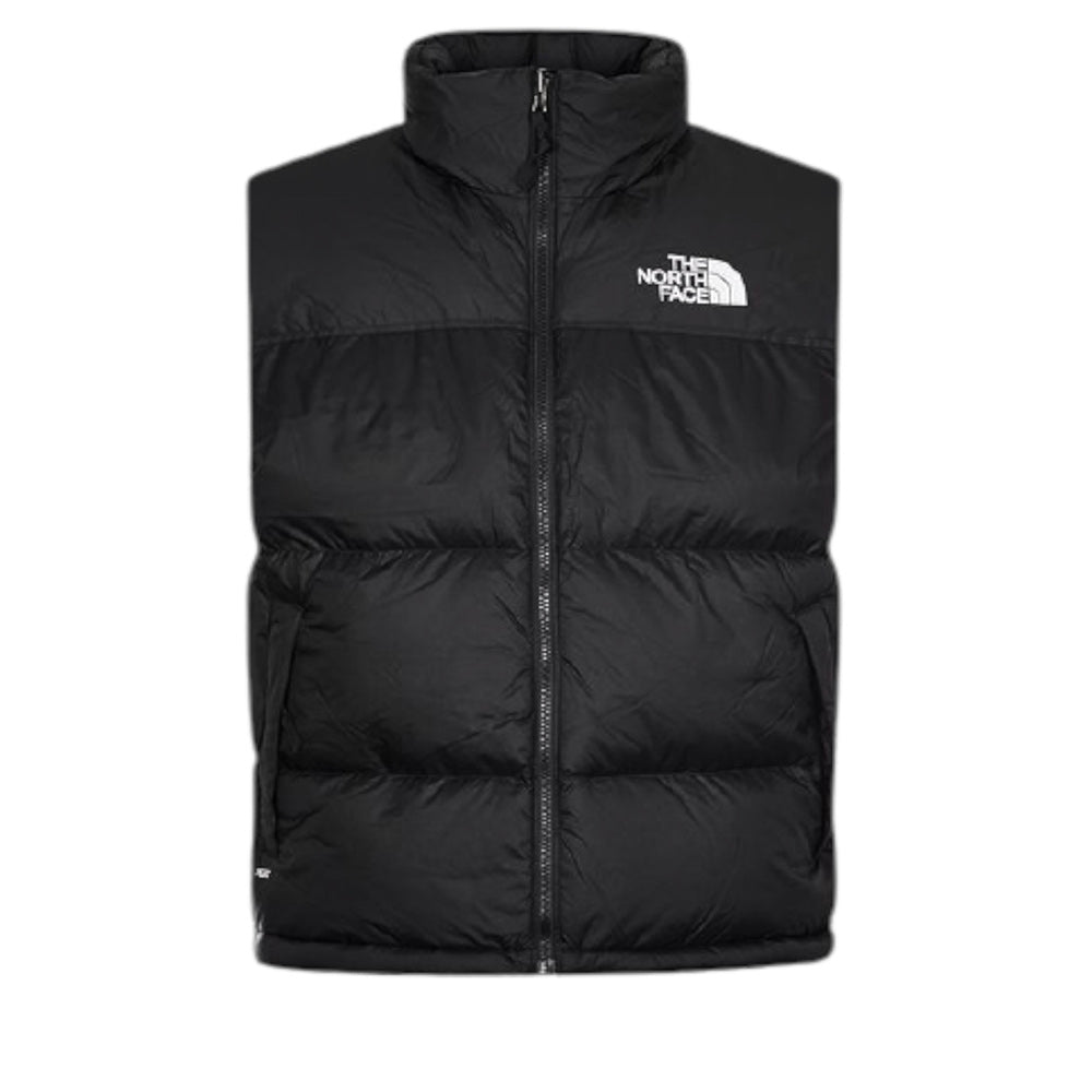 Smanicato realizzato in nylon, caratterizzato da design trapuntato, imbottitura in piuma 80/20, collo alto con cappuccio estraibile, chiusura frontale con zip, due tasche laterali all'americana con zip e orlo con coulisse regolabile. È decorato con logo ricamato sul petto e sul retro.