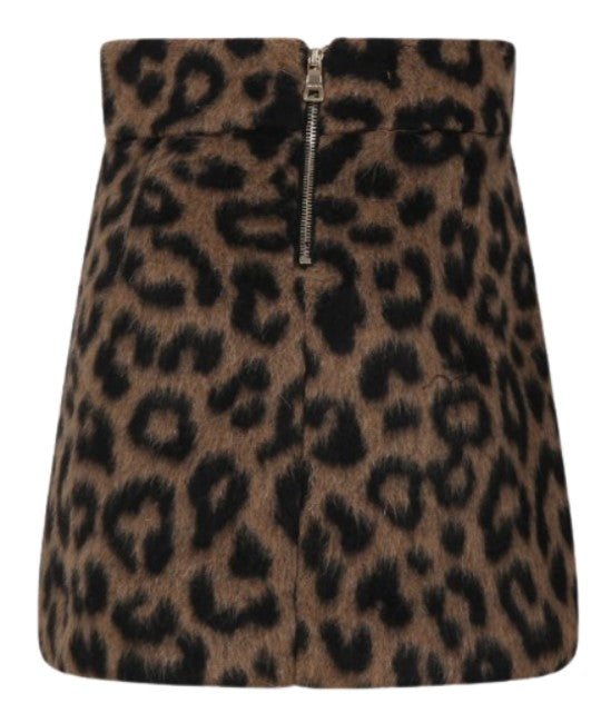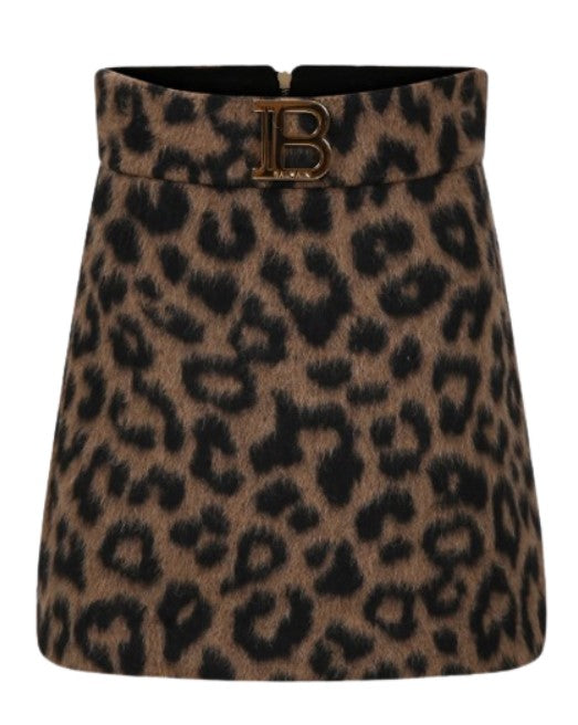 Leopard print skirt, gold B logo plaque on the front, straight hem, back zip fastening.