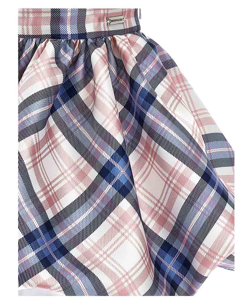 Gonna mikado a palloncino da bambina con fantasia tartan all-over e chiusura laterale con cerniera.
