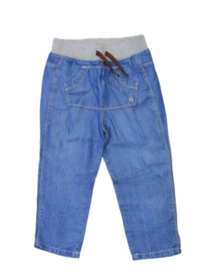 Cotton trousers with elasticated waist, kangaroo pocket.