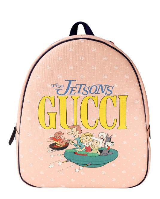 Girls' leather backpack. The Jetsons© x Gucci collaboration, features logo print on the front, adjustable shoulder straps, zip closure.