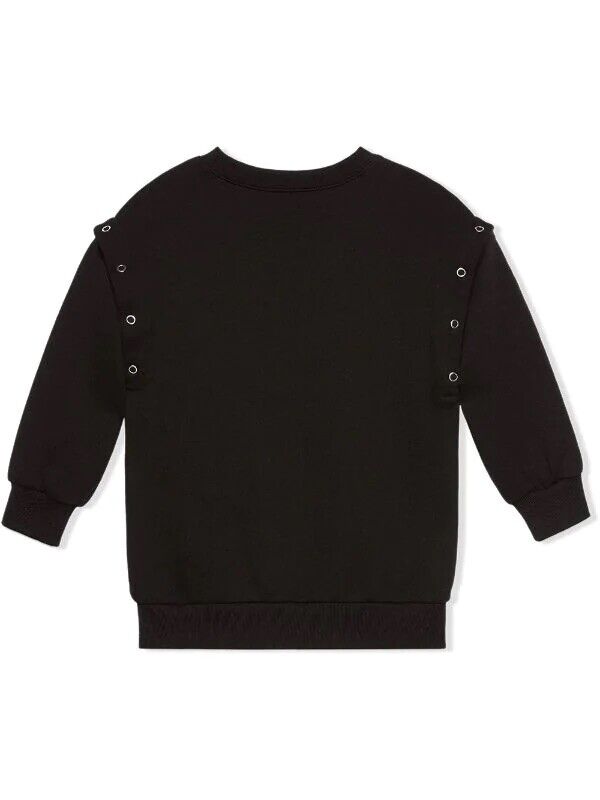 Crewneck sweatshirt, printed logo and applications on the front.