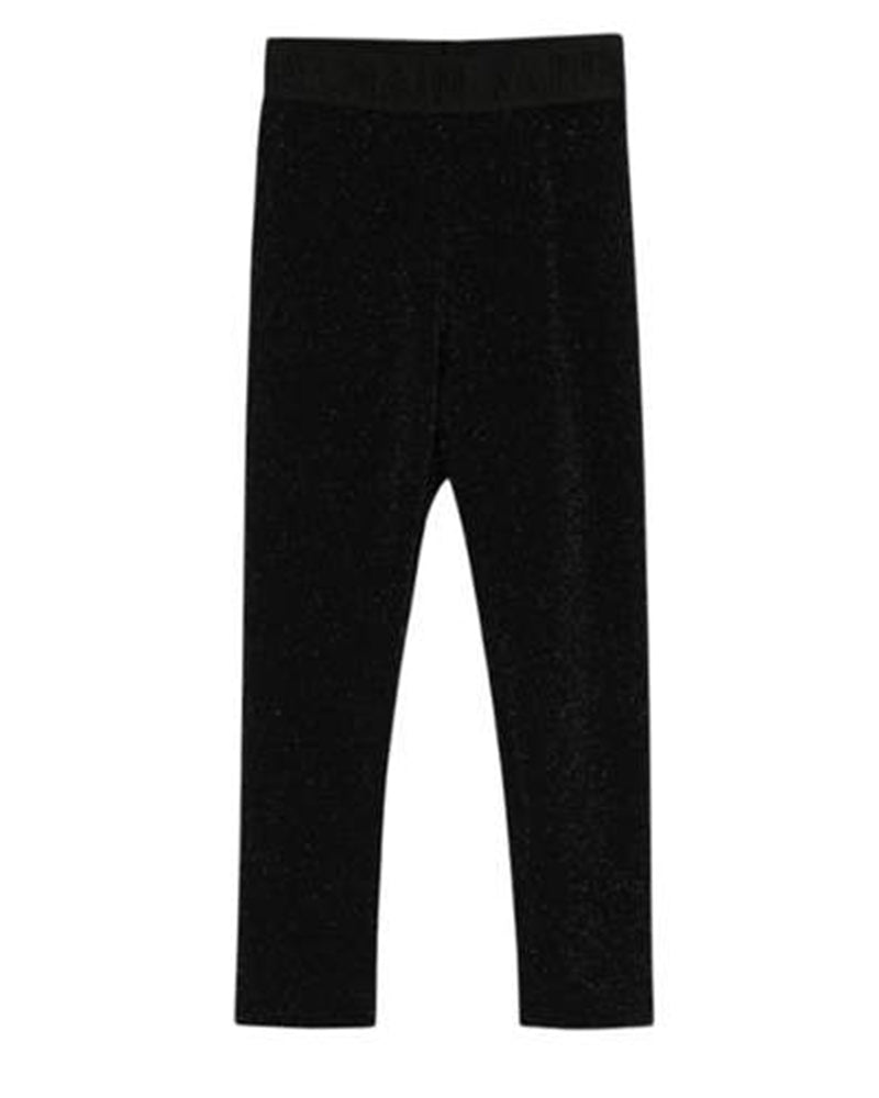 Leggings neri realizzati in nylon con dettagli lurex e elastico in vita con logo ricamato.