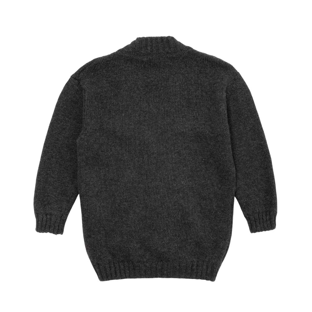 Cardigan realizzato in misto lana nerino, caratterizzato da scollo a V, chiusura frontale con bottoni, maniche lunghe, orlo dritto e finiture a coste.