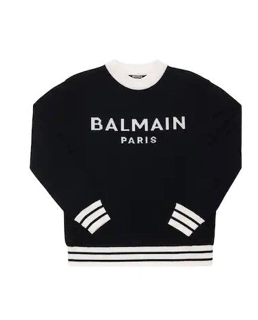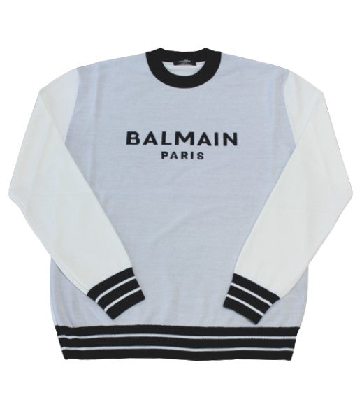 Crew neck sweater, contrasting logo on the front, contrasting collar, cuffs and hem.