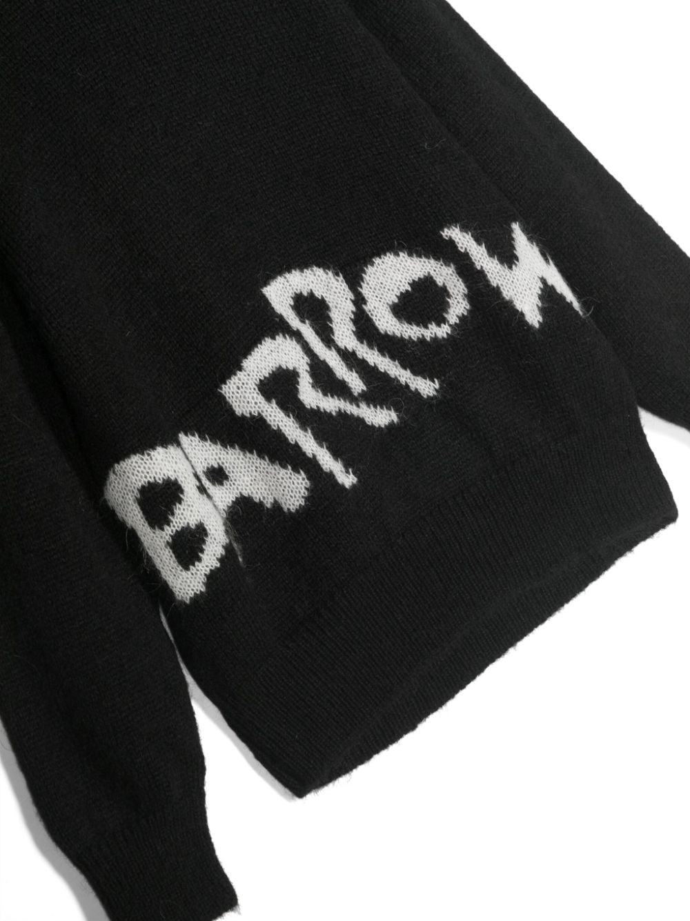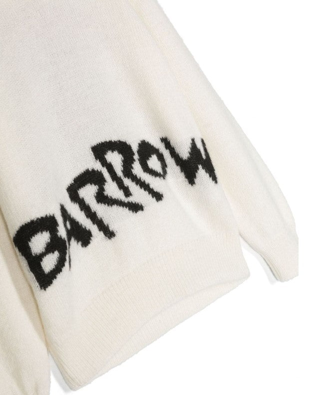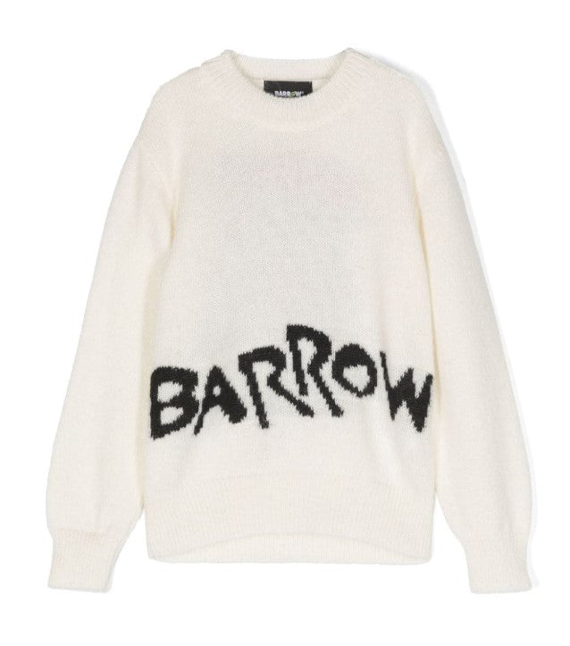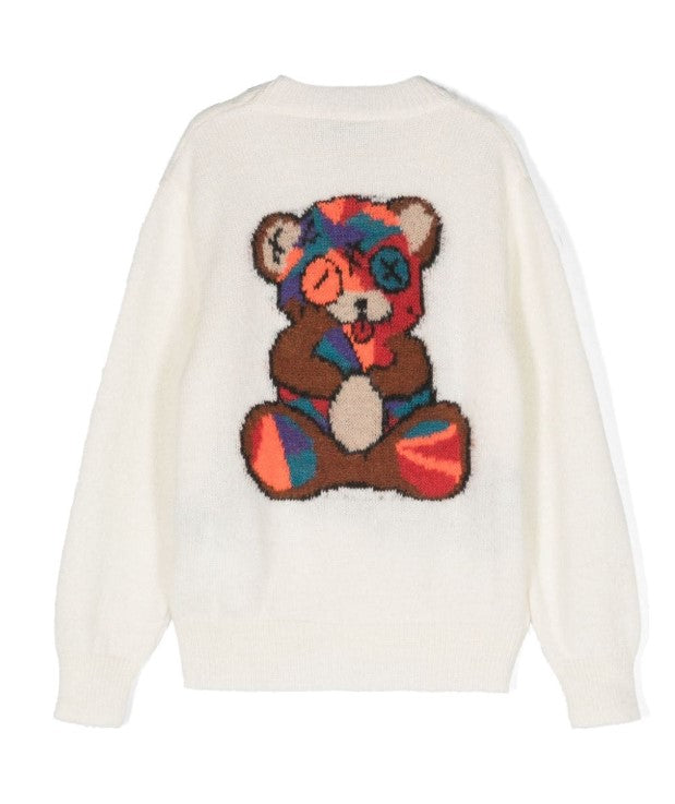 Crew neck wool sweater with logo on the front and teddy bear on the back.
