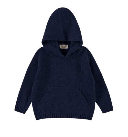 Wool sweater with long sleeves, hood, kangaroo pocket on the front, ribbed cuffs and hem.