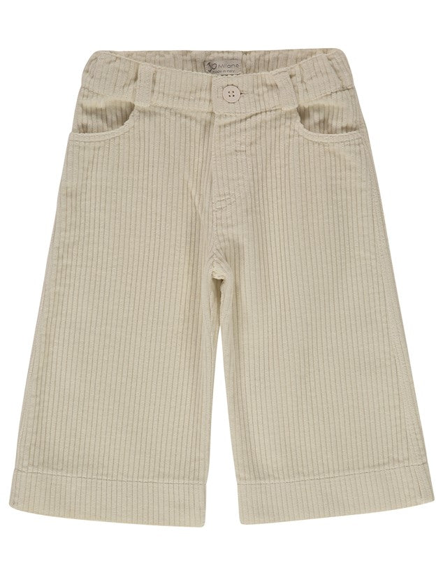 Corduroy palazzo trousers, five-pocket style, front button fastening.