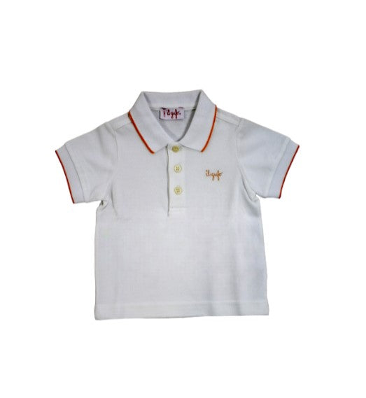 Short-sleeved cotton pique polo shirt with collar, front button placket. Embroidered logo on chest.