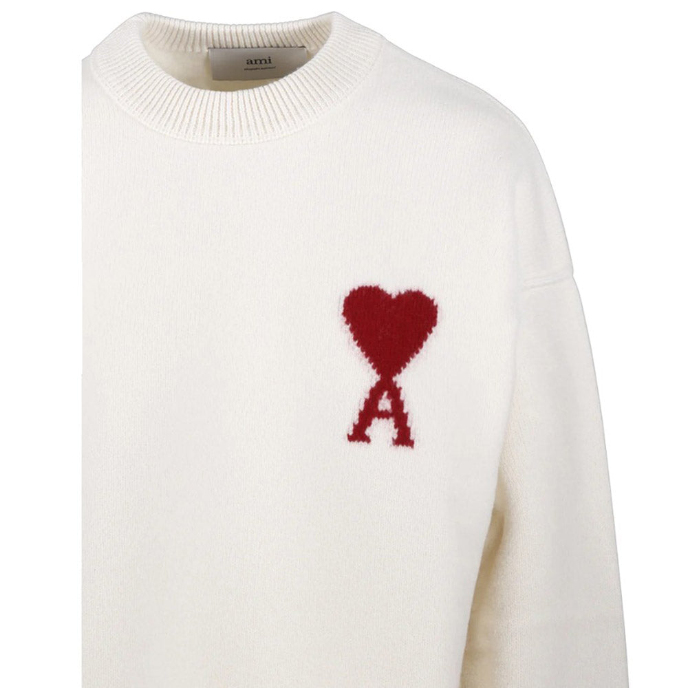 Amis Paris Maglia girocollo avorio in lana Coeur UKS838.018A