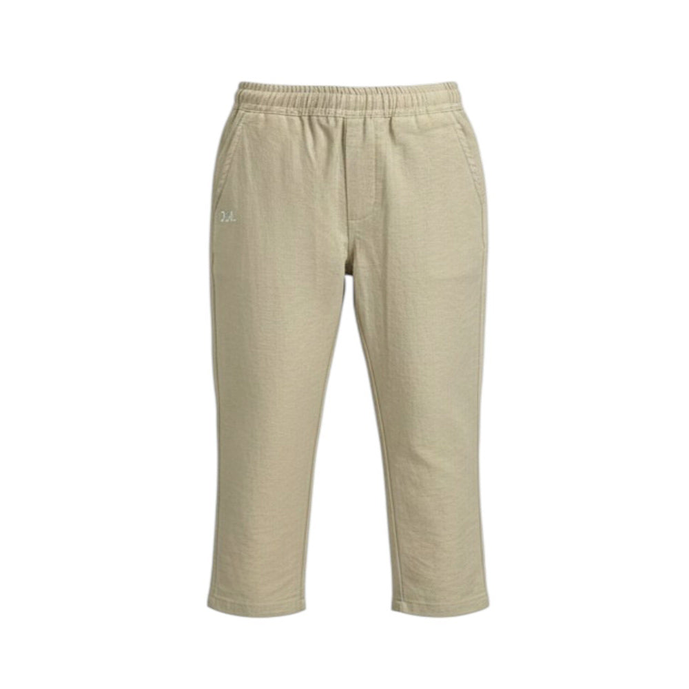 Pantaloni realizzati in leggero tessuto di misto viscosa, caratterizzati da vita elasticizzata con coulisse interna, due tasche laterali all'americana e logo ricamato a contrasto sul davanti.